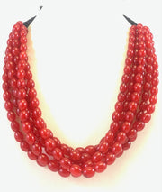 NK14533 RED MULTI LAYERED GLASS BEAD WITH BLACK RIBBON NECKLACE