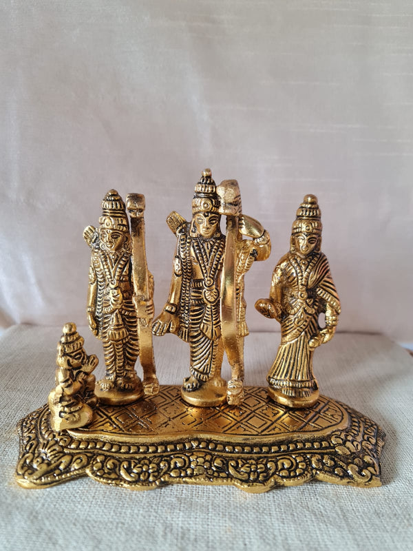 The Ram Darbaar features the divine presence of Lord Ram, Goddess Sita, Lord Lakshman, and Lord Hanuman, symbolizing unity, virtue, and unwavering devotion. Each figure is meticulously crafted with intricate details, radiating a profound sense of divine grace and reverence. Crafted from white metal, this composition exudes opulence, and the lacquer polish enhances its beauty, creating a dazzling, mirror-like sheen that symbolizes purity and sanctity.
