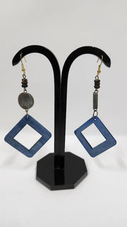 HORN BEAD BLUE & GREY COLOR EARRINGS