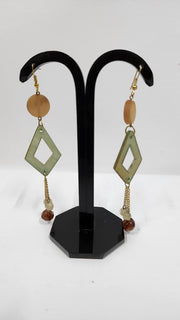 HORN BEAD GREEN & BEIGE COLOR EARRINGS