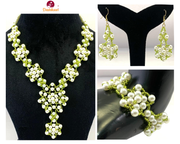 NK14593B WHITE GREEN COLOR PLASTIC PEARL & SEED BEAD NECKLACE SET