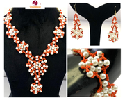 NK14593A WHITE ORANGE COLOR PLASTIC PEARL & SEED BEAD NECKLACE SET