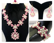 NK14152A WHITE PINK COLOR PLASTIC PEARL & SEED BEAD NECKLACE SET