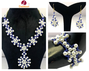 NK14152B WHITE BLUE COLOR PLASTIC PEARL & SEED BEAD NECKLACE SET