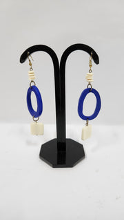 ACRYLIC & BONE BEAD COBALT & NATURAL COLOR EARRINGS