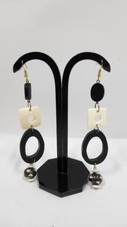 ACRYLIC & BONE BEAD BLACK & WHITE COLOR EARRINGS