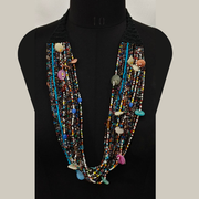 MULTY LAYERED SEED BEAD AND SHELL THREAD NECKLACE