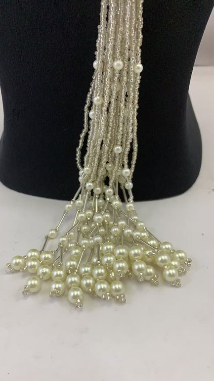 WHITE SEED/PEARL BEAD TIE NECKLACE