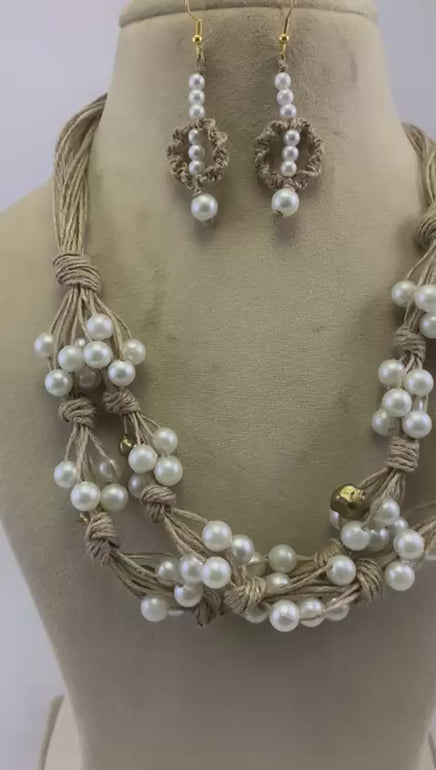 Elevate your everyday style with this stunning multi-layered necklace, expertly crafted from natural jute and adorned with lustrous pearl and gold-toned metal aluminium beads. The harmonious blend of organic texture and metallic accents creates a versatile piece that transitions seamlessly from casual to formal occasions. Each layer adds depth and dimension, making a bold statement while maintaining an effortless elegance. Perfect for those who appreciate artisanal craftsmanship and contemporary design.
